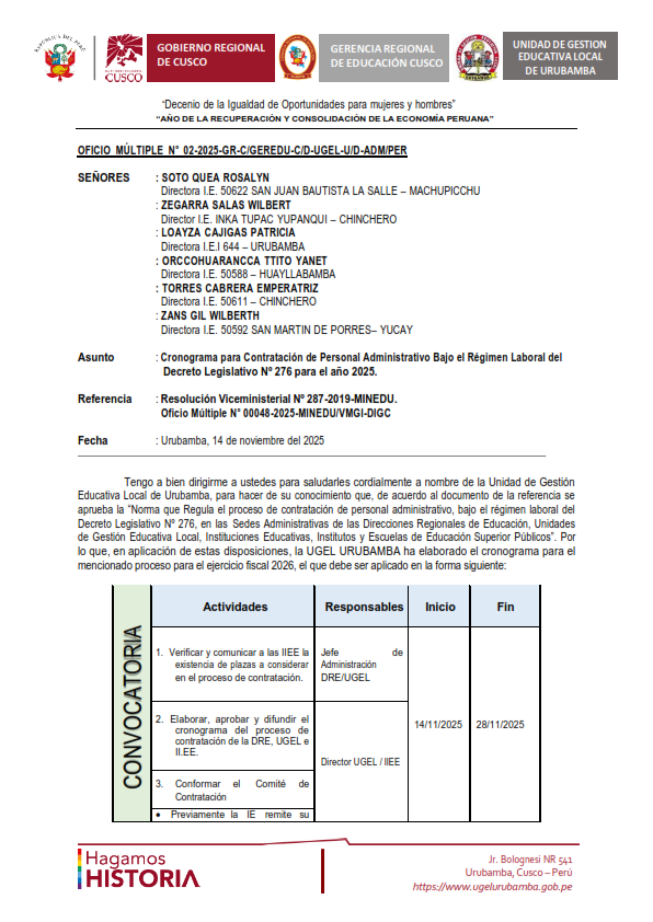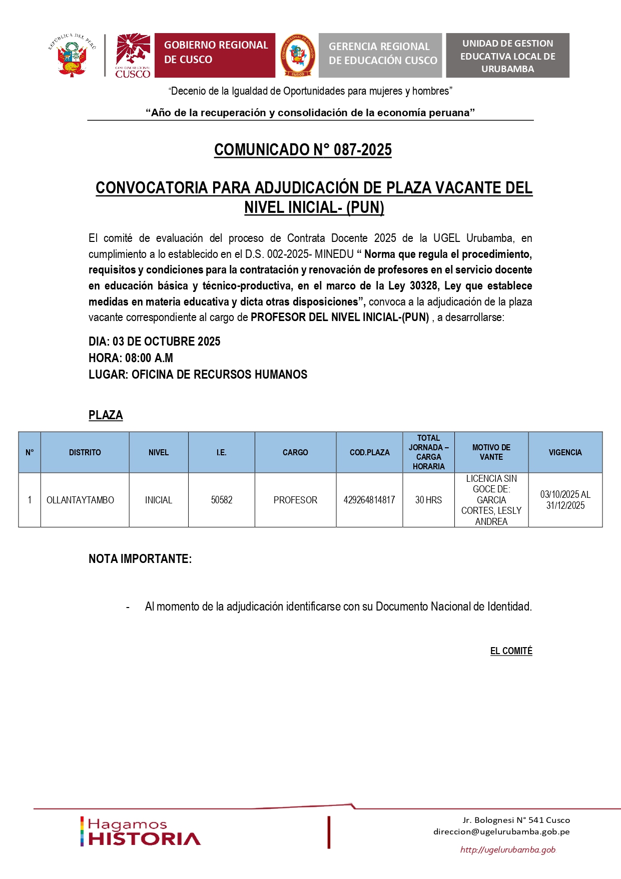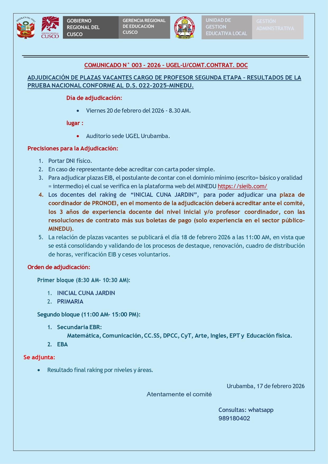 Bienvenido a la Unidad de Gestión Educativa Local de Urubamba